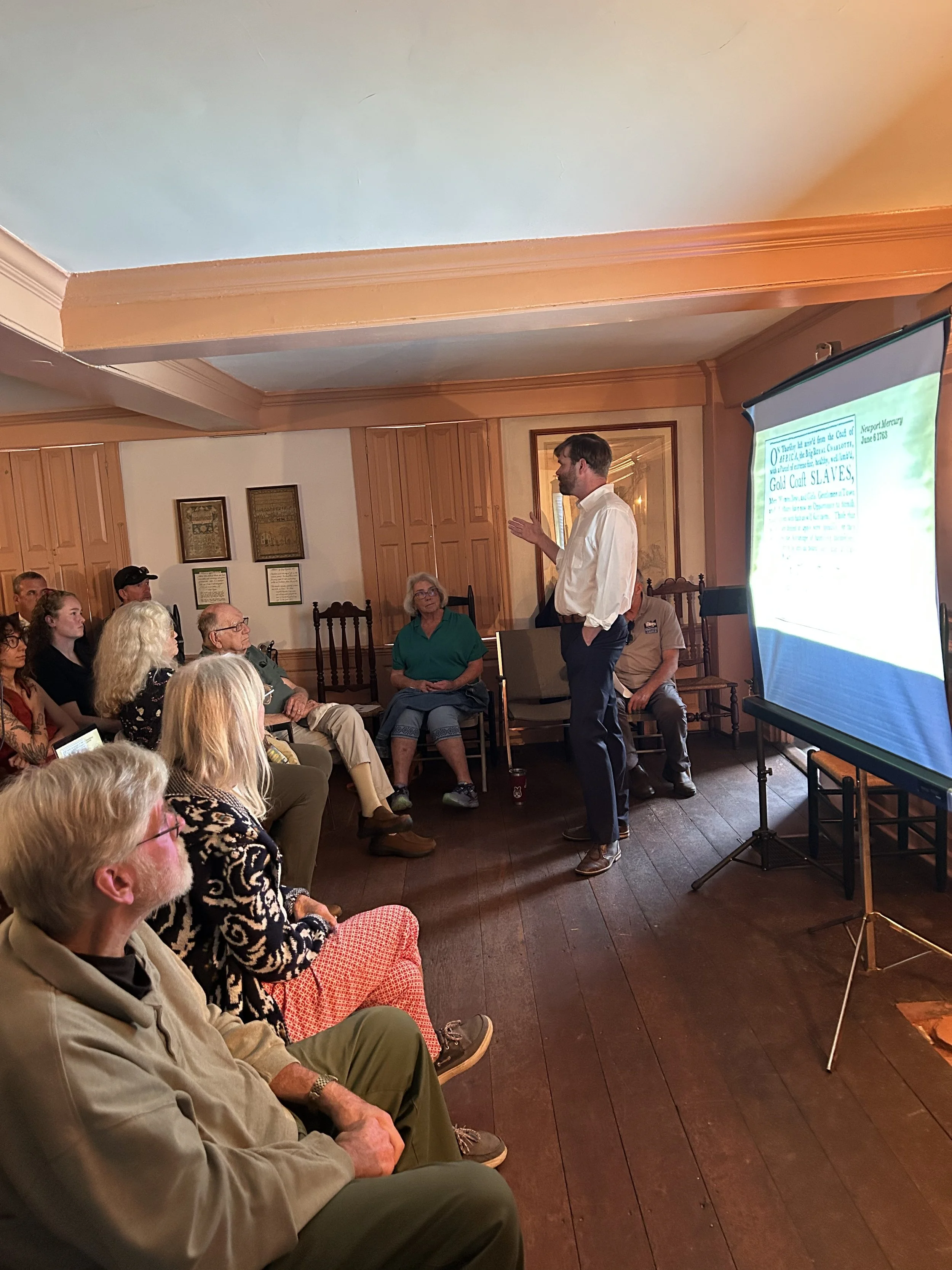Along the western shore of the Narragansett Bay in Rhode Island is an area known as Cocumscussoc, which is part of the ancestral homeland of the Narragansett People. Cocumscussoc was also the location of trading posts established by Roger Williams and Richard Smith in the late 1630s. Nestled among the cattails and holly trees at Cocumscussoc is a handsome house that has existed on the site since 1678, known for centuries as Smith’s Castle. Although not a castle by today’s definition it was given that name due to its size and sturdy construction. It was home to the Smith family, their heirs- the Updikes, and dozens of enslaved people for over a century-and-a-half. Smith's Castle is the oldest surviving plantation house in America and is recognized on the National Register of Historic Places. The site on which Smith's Castle sits, Cocumscussoc, is also identified independently as a National Historic Landmark. The historic property is also part of the Rhode Island Slave History Medallion program, which promotes public awareness about slavery at historic sites across Rhode Island.