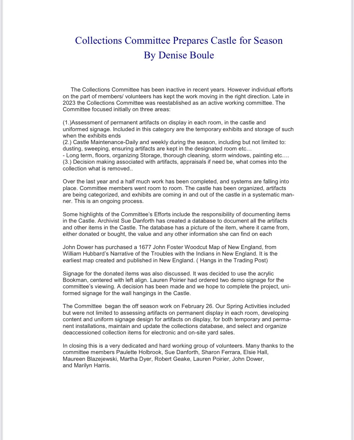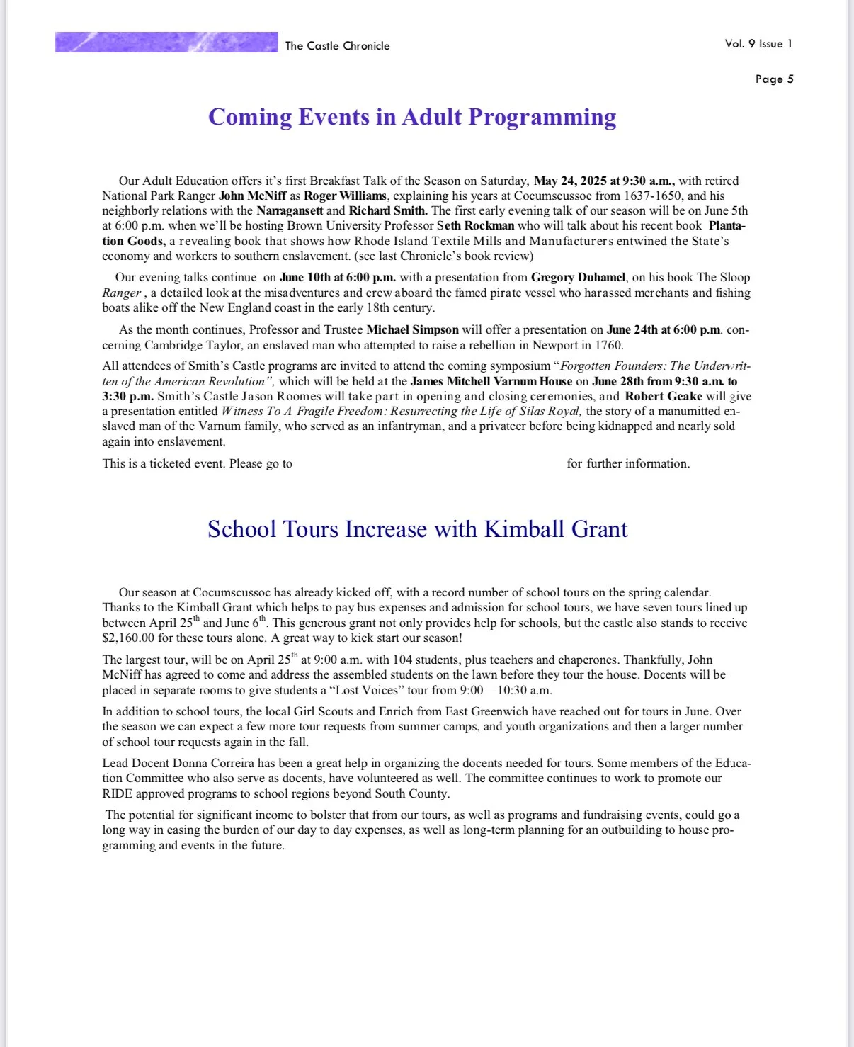 Castle Chronicle Archive