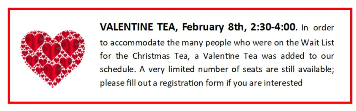 December 14: Christmas Tea. Late 18th Century Fashion Show by the Ladies of the Greene. Christmas Tea is * SOLD OUT*