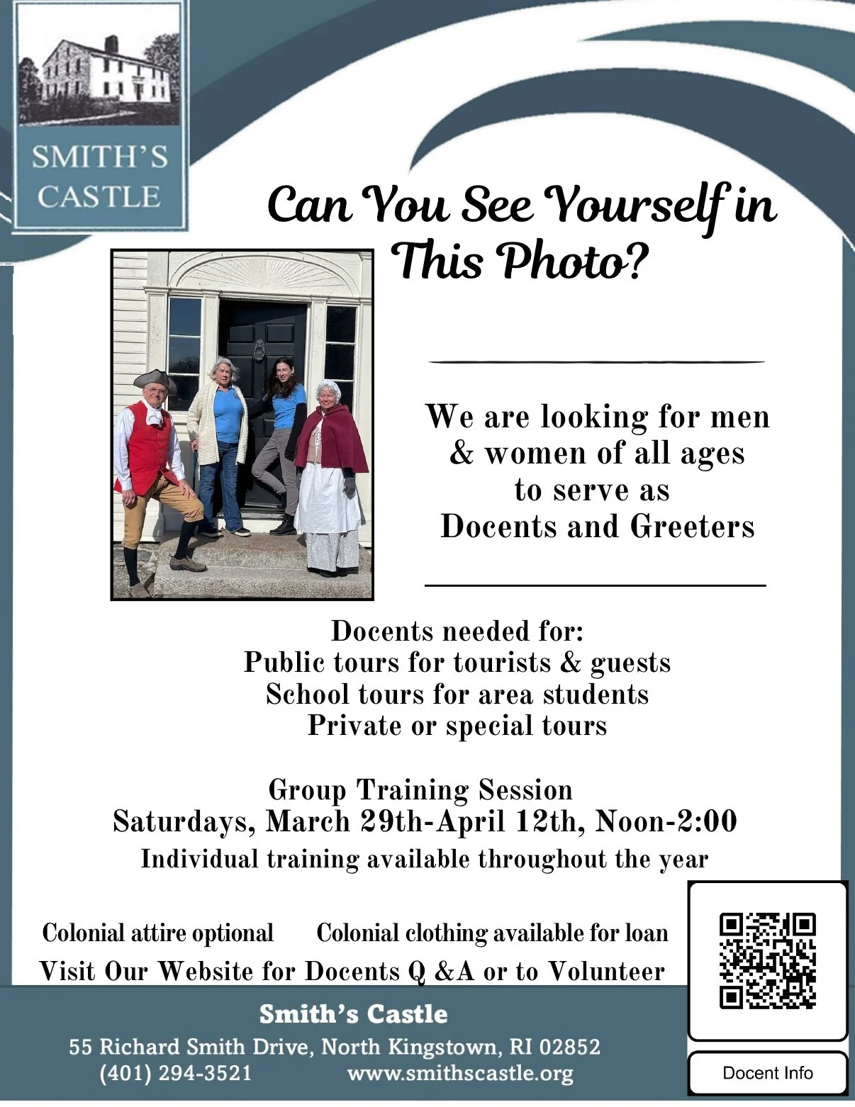 If you wish to volunteer in other ways for Smith’s Castle please visit our Volunteers page Here